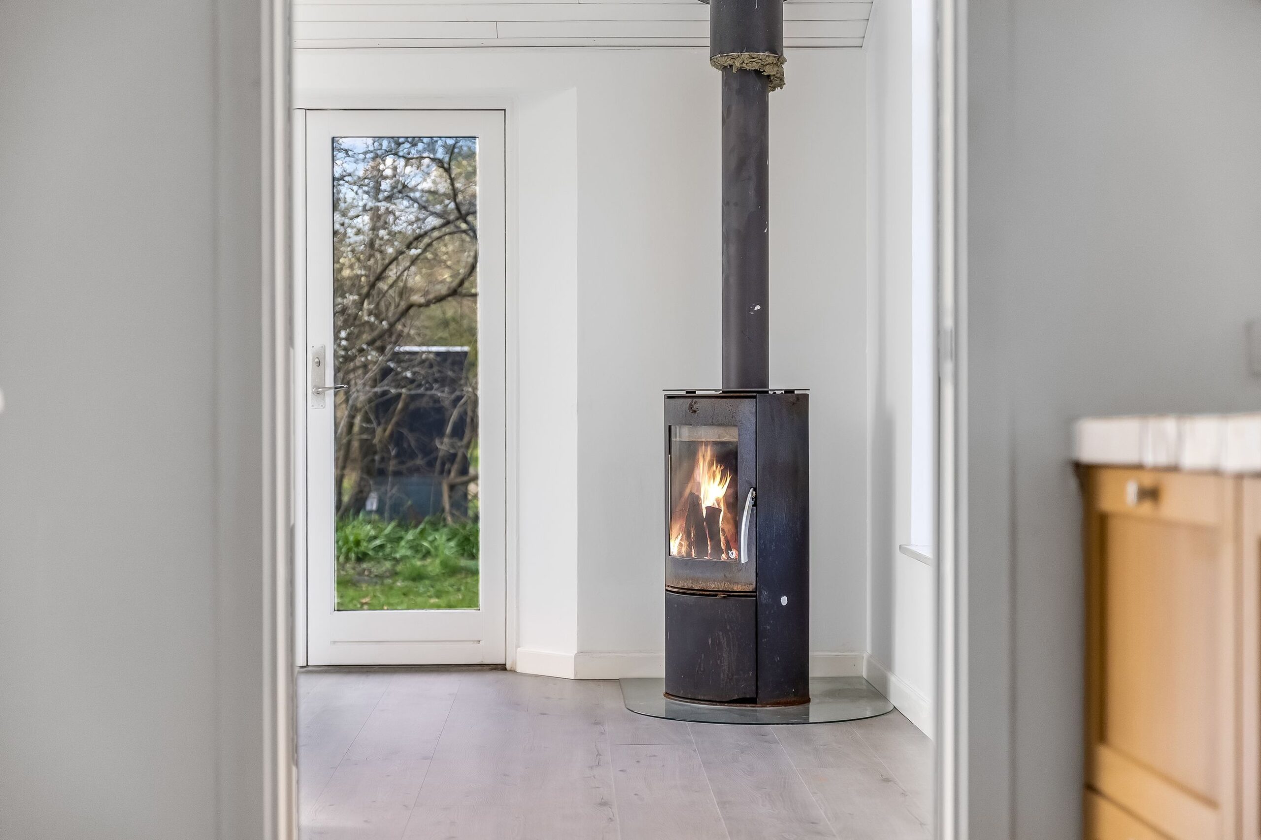 Sommerhuset er indrettet med fokus på hygge og funktionalitet, og de naturlige omgivelser kan nydes fra både inde- og udeliv. Her er plads til fordybelse, afslapning og lange sommerdage i grønne og rolige rammer, hvor fugleliv og årstidernes skiften er en del af hverdagen.