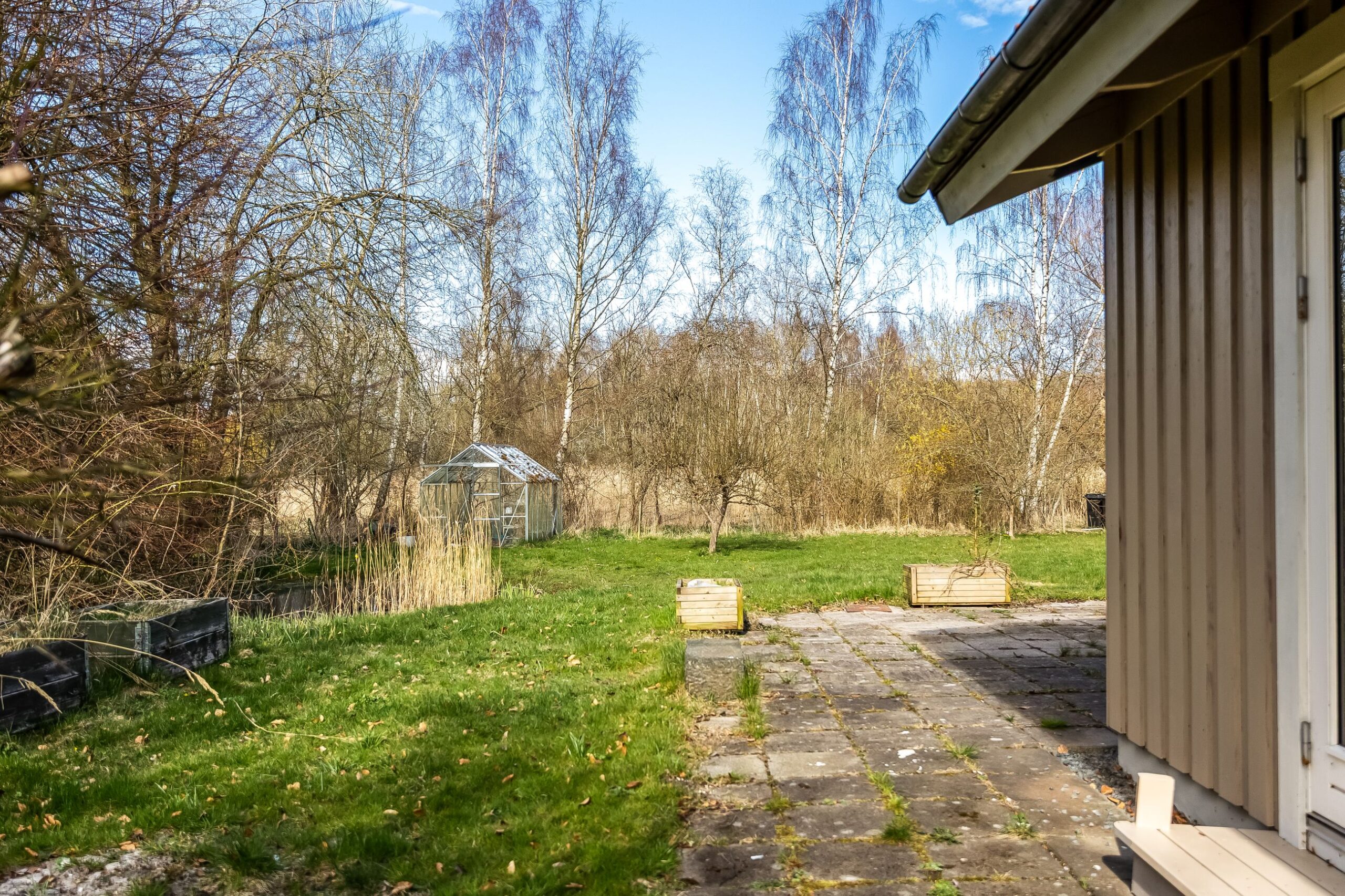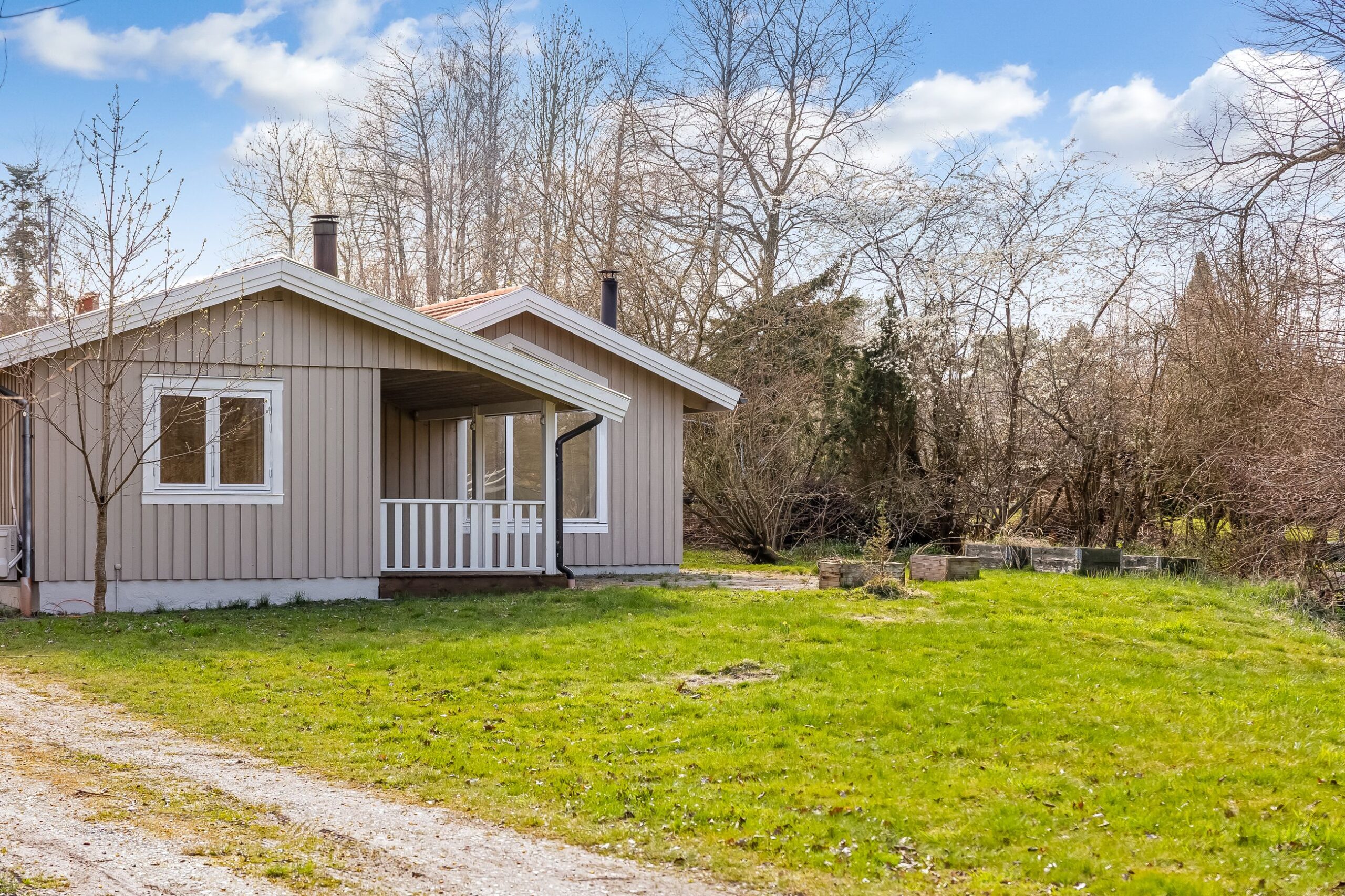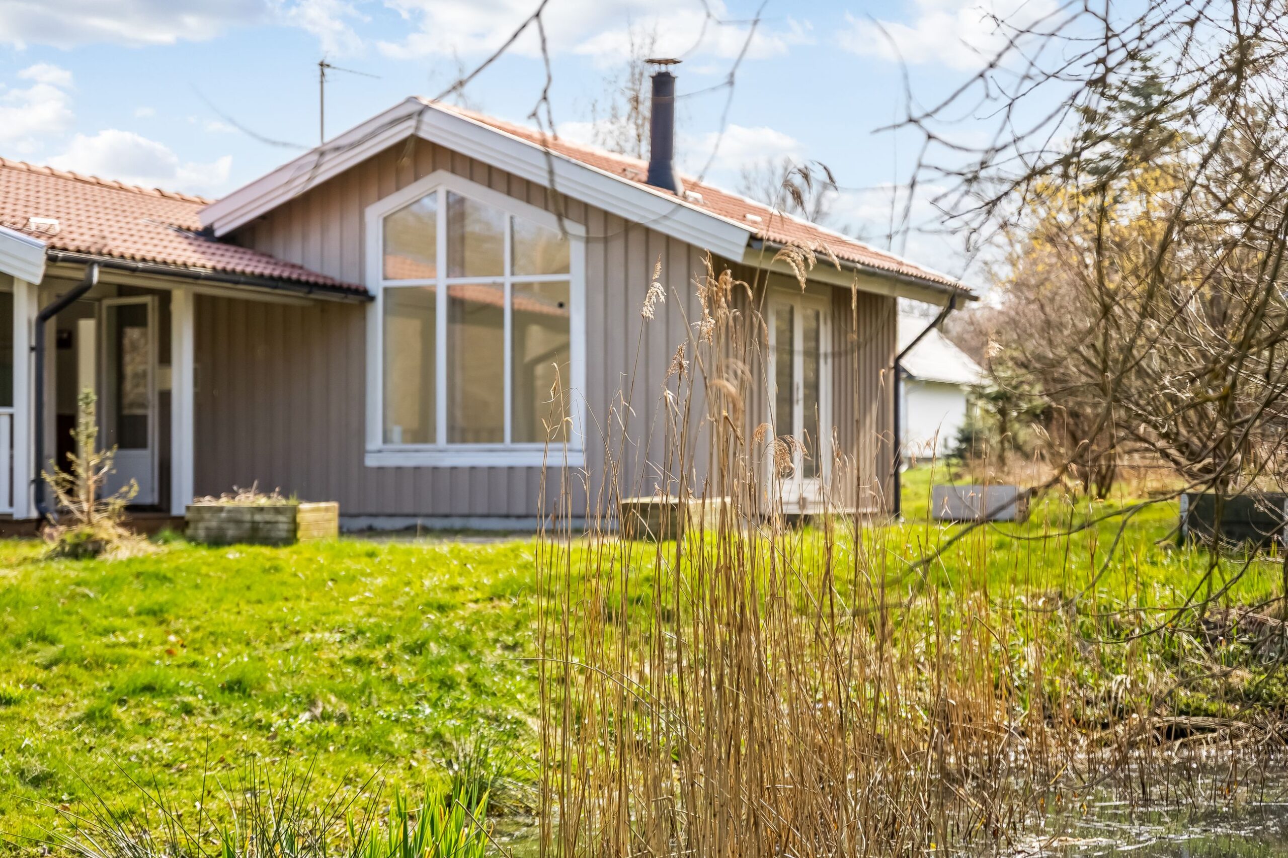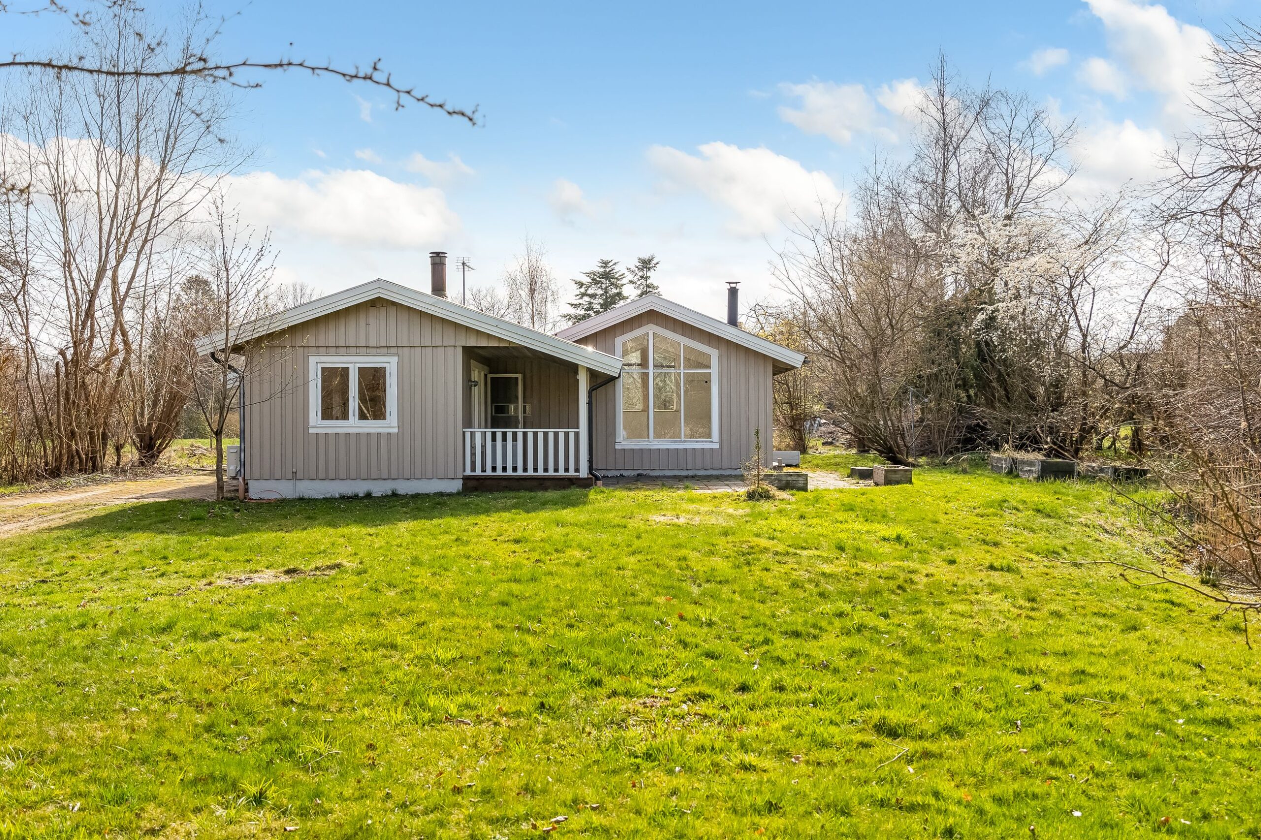 Her får du 80 veludnyttede m² bolig opført i 1989, beliggende i fuldstændig fredelige omgivelser med egen sø og direkte op til skovens grønne arealer. Kombinationen af vand, skov og privat atmosfære skaber en sjælden ro, hvor naturen føles som en integreret del af ejendommen.