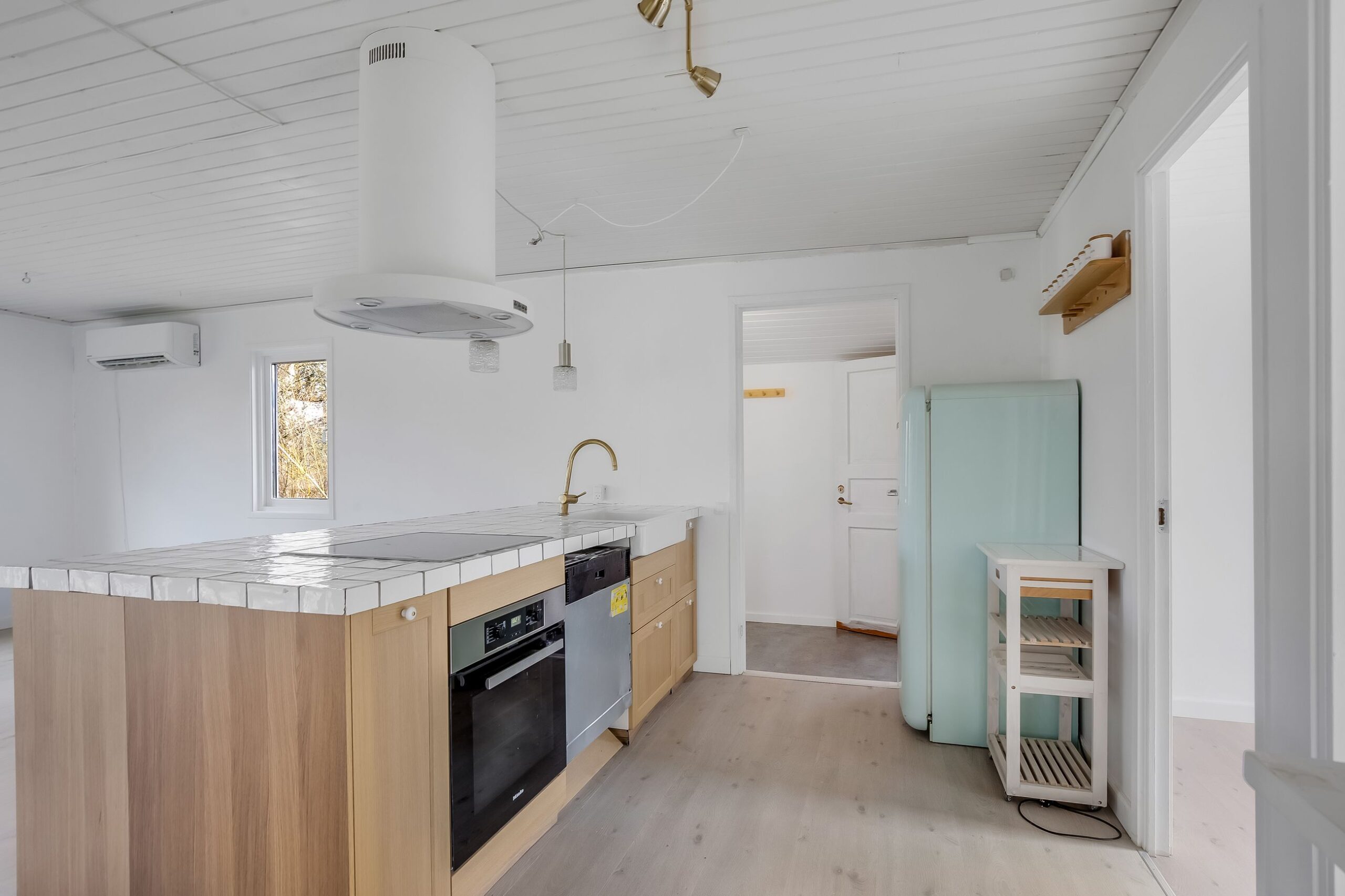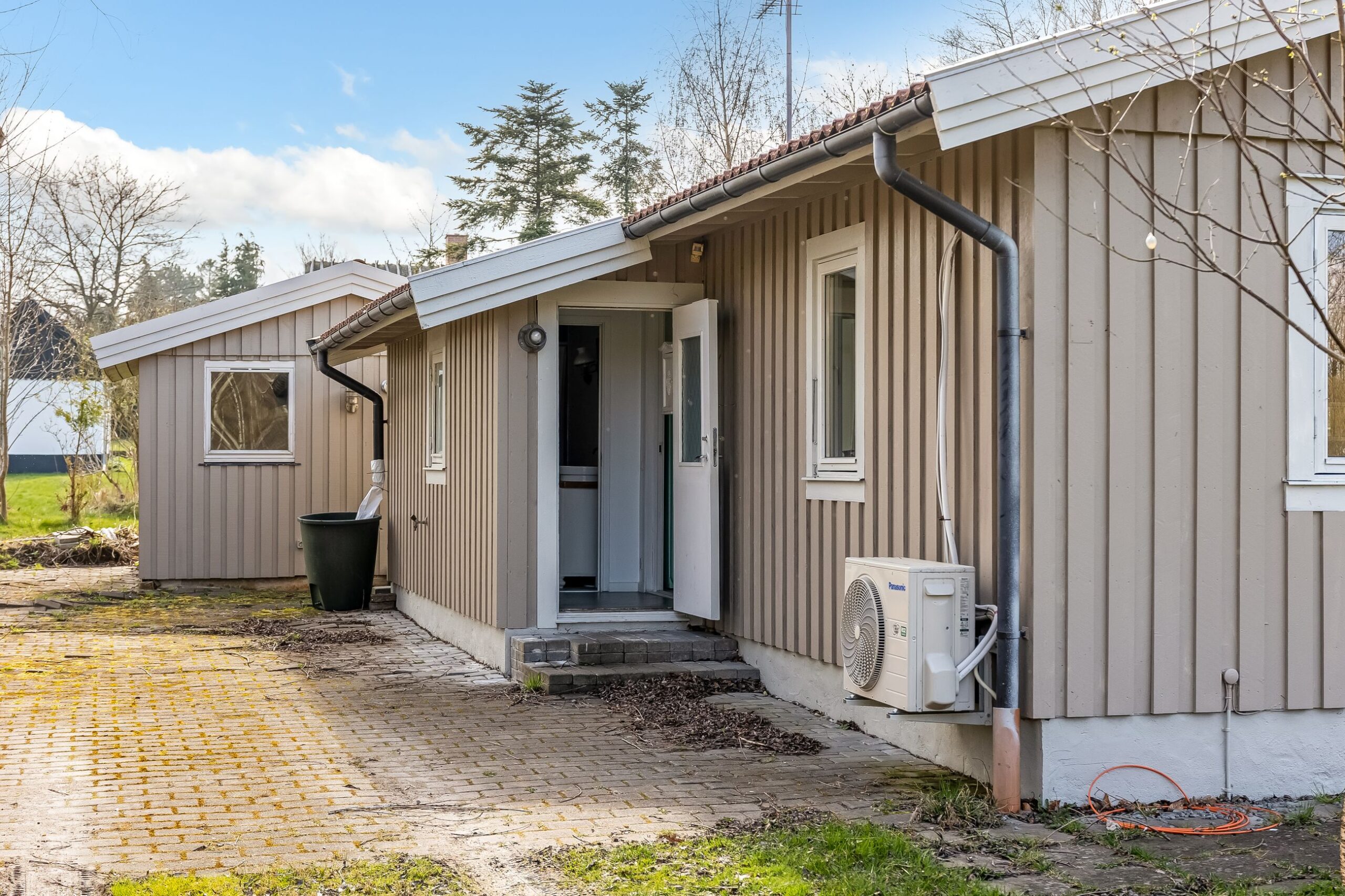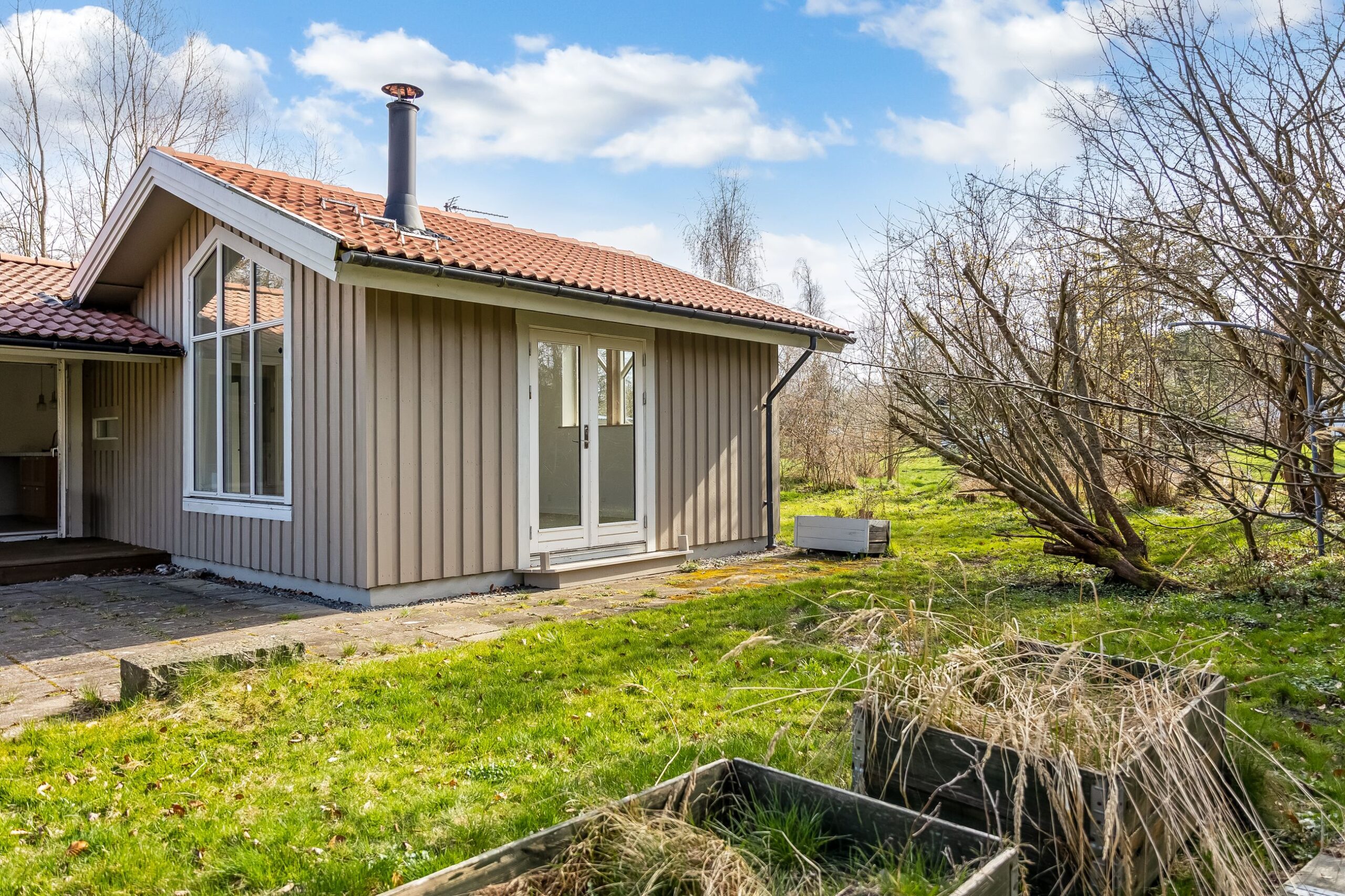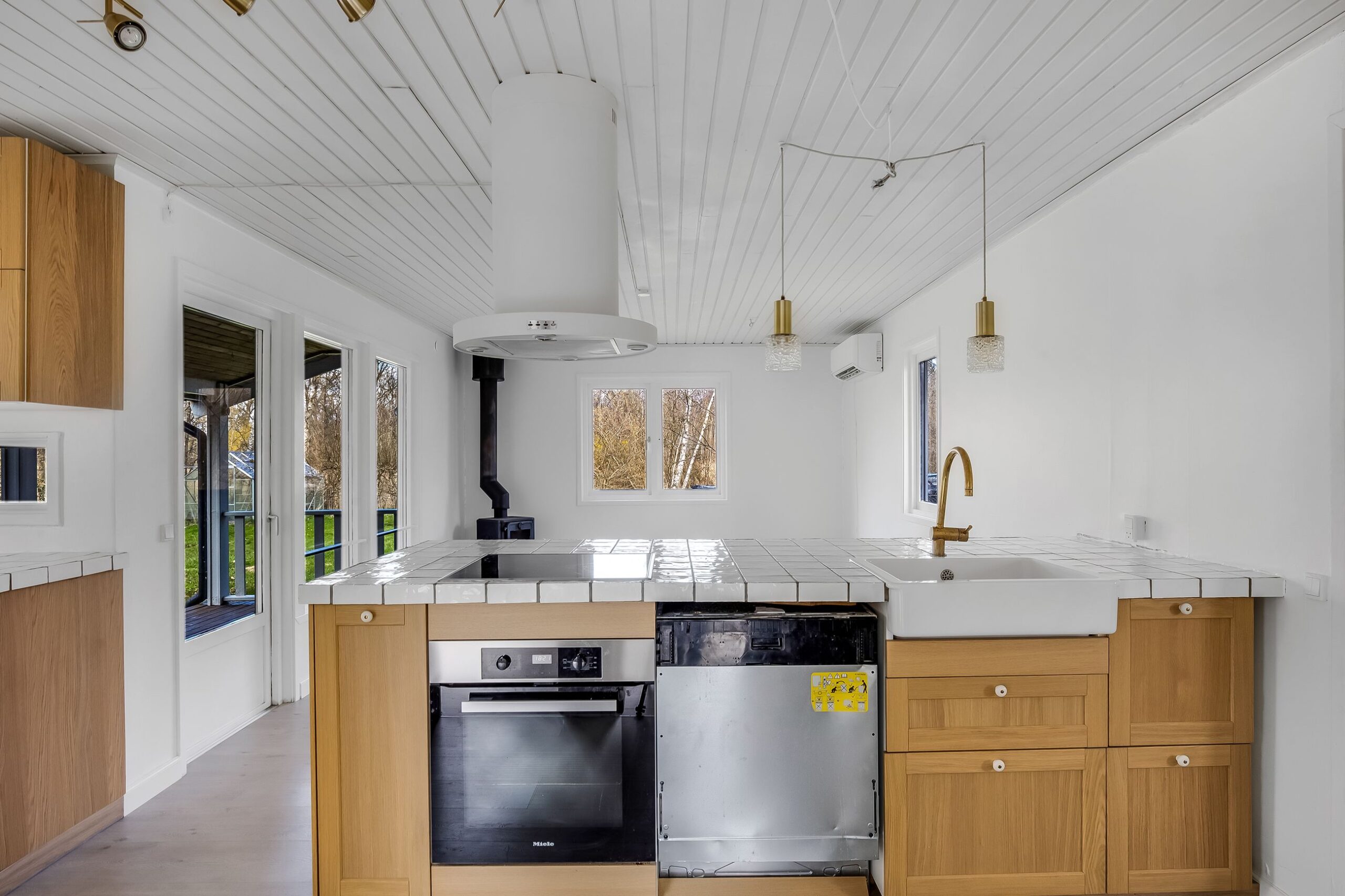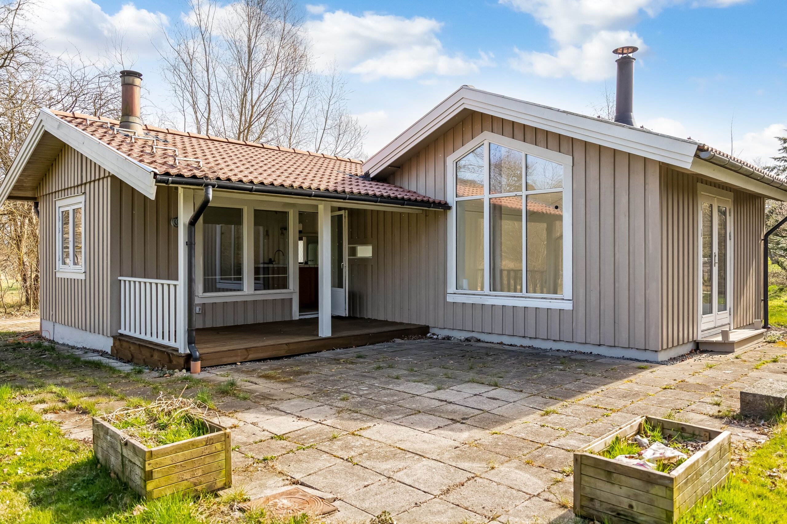 Her får du 80 veludnyttede m² bolig opført i 1989, beliggende i fuldstændig fredelige omgivelser med egen sø og direkte op til skovens grønne arealer. Kombinationen af vand, skov og privat atmosfære skaber en sjælden ro, hvor naturen føles som en integreret del af ejendommen.