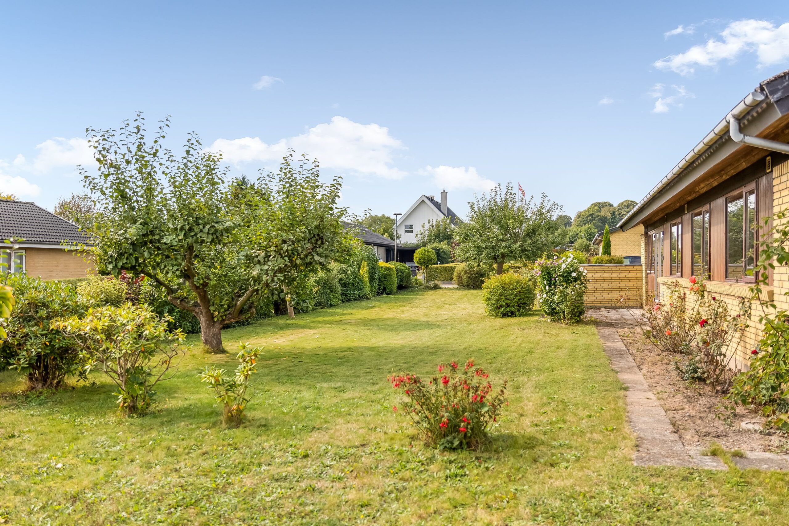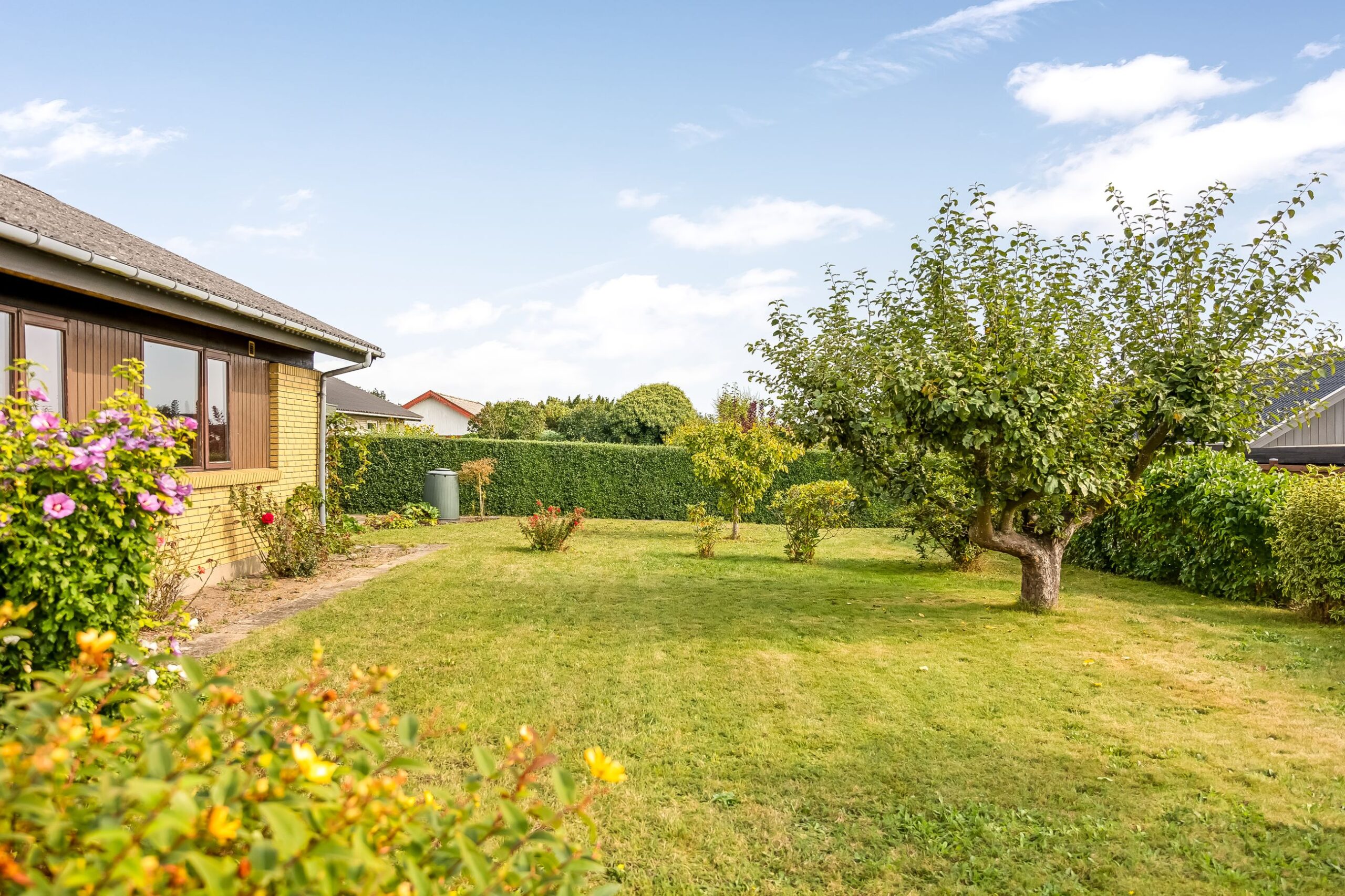 Udenfor venter en skøn, solrig have med gode muligheder for leg, afslapning og hyggelige stunder med familie og venner. Grunden på 761 kvm giver masser af plads til at nyde udendørslivet i rolige omgivelser.